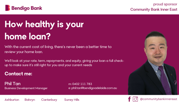 Once again, we welcome Bendigo Bank as a Gold Partner. Bendigo Bank support sport across Victoria and have a commitment to investing in the communities that they serve. Contact Phil Tan and the hard-working team at the Ashburton branch for a no-obligation review of your home or business loan – they will do their best to beat your current rate!